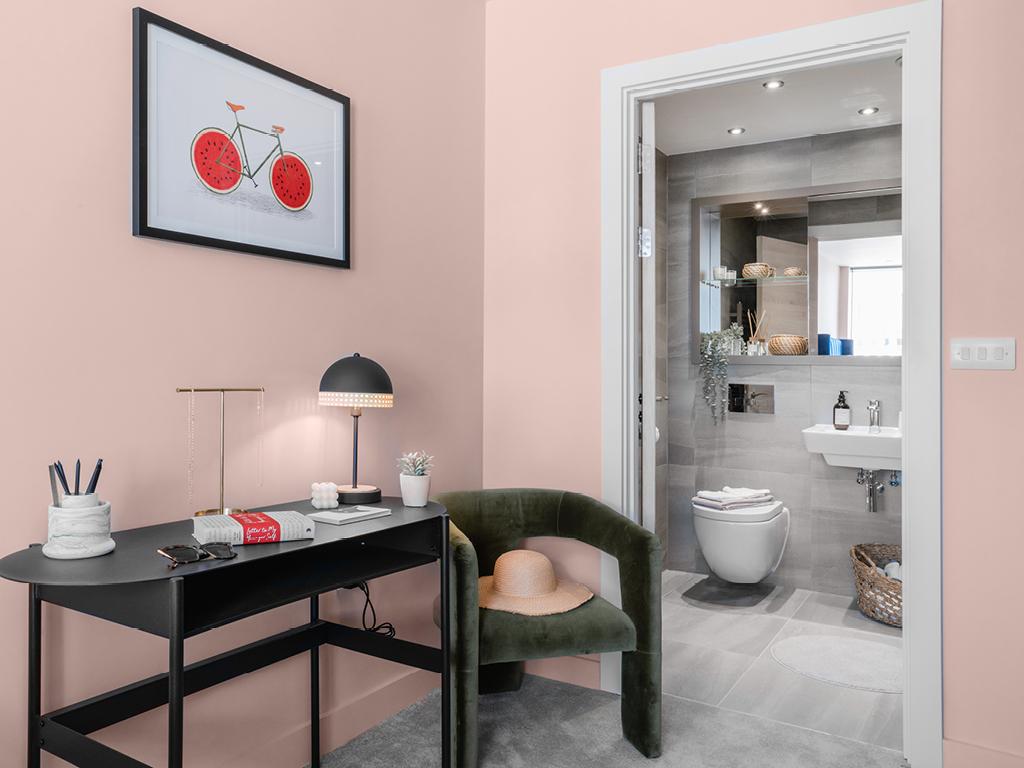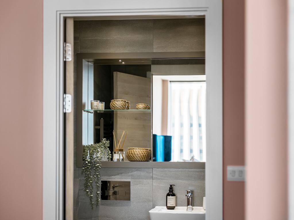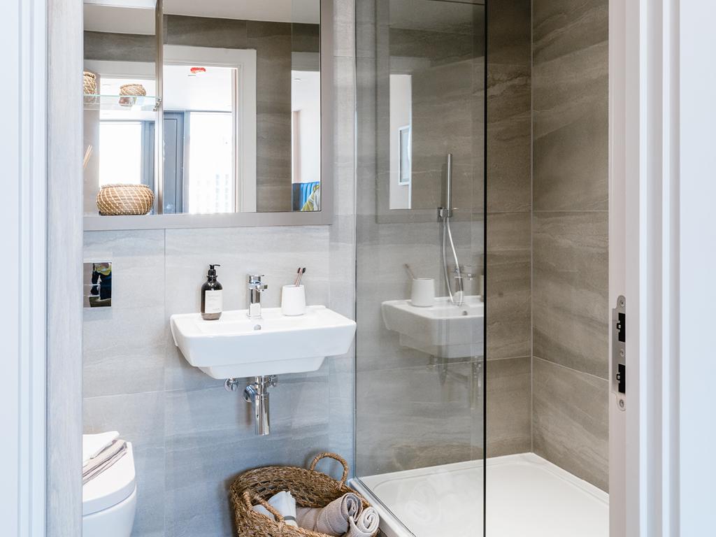 En-suite bathrooms with contemporary porcelain tiling throughout. One with deluxe rainfall shower, the other with bath and rainfall shower, and each with separate handheld shower, WC and heated towel rail, plus bespoke vanity cabinet with LED lighting.