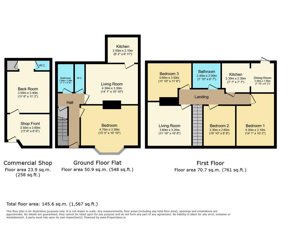 Self-contained shop premises with a front customer entrance and yard, rear room/storage area and WC. Suitable for a variety of uses, offering strong rental potential.