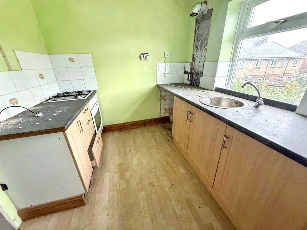 Spacious first-floor residential flat comprising its own entrance hallway, kitchen / dining room, bathroom and generous living accommodation. Ideal as a rental investment once refurbished. Featuring a shared rear yard.
