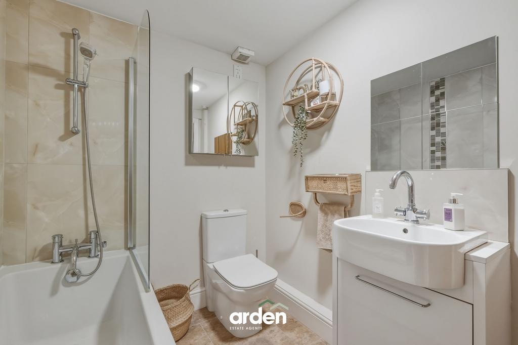 The hallway also leads to the sleeping accommodation, comprising two well-proportioned bedrooms. The principal bedroom benefits from an en-suite shower room, while a modern family bathroom serves the remaining bedroom.