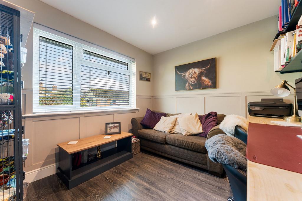 The accommodation is cleverly arranged over two floors and has been tastefully modernised by the current owners. Downstairs, there is a welcoming entrance hall, spacious lounge/dining room with French door to the rear, a modern kitchen, bedroom three and a bathroom with the first floor comprising two double bedrooms including the master and a further family bathroom. Outside the gardens are well landscaped with the front providing ample driveway parking, a low maintenance lawn area and access to the garage. At the rear, there is a good sized paved patio, well kept lawn in addition to a useful garden cabin and multiple storage options.