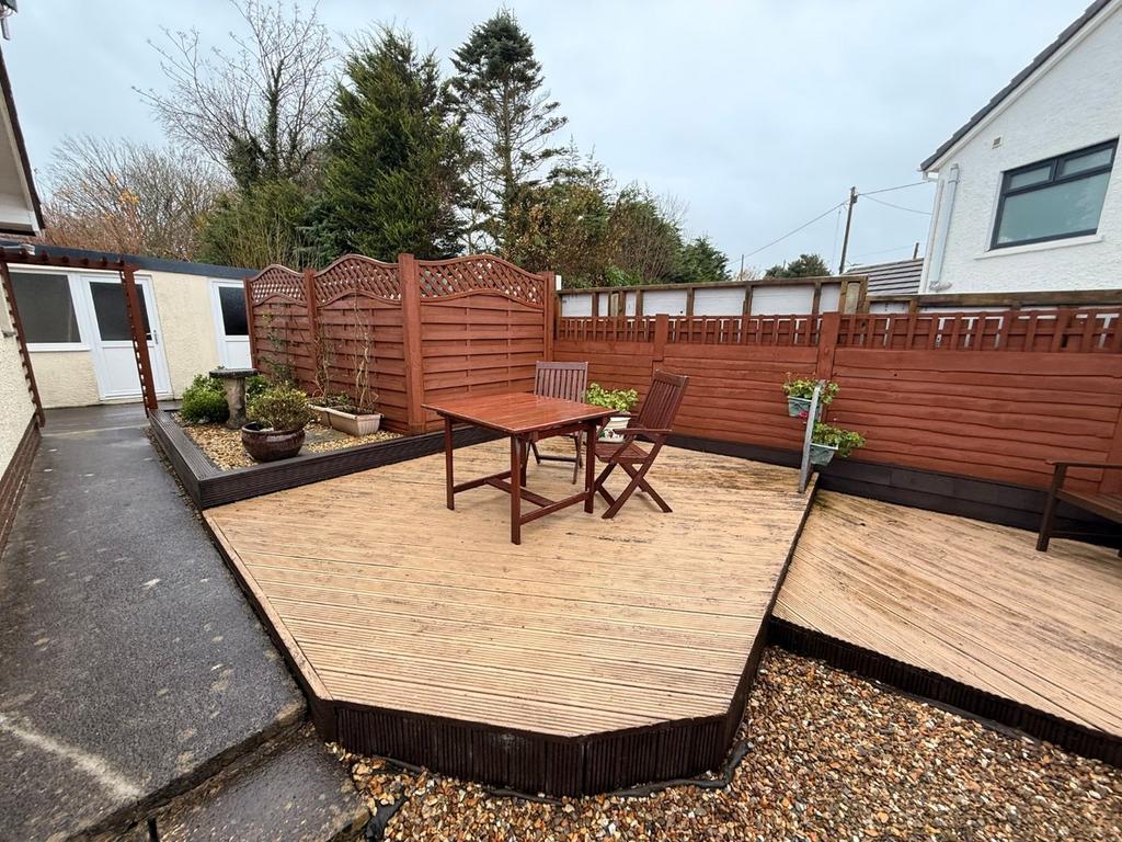 The grounds for ease of maintenance have been gravelled with large decking areas. Fully enclosed with recently erected side gate. Covered oil tank.