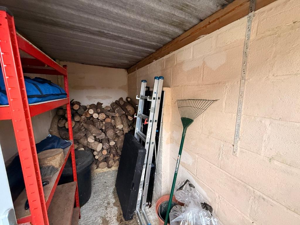 15' 1" x 11' 2" (4.60m x 3.40m) with up and over door, power and light connected. Rear lean to shed 11'2" x 5. Outside water tap.