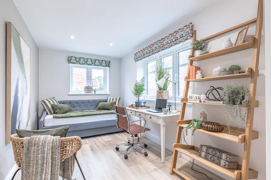 Upstairs, all four bedrooms are doubles, with the principal bedroom featuring a walk-in wardrobe and en-suite, alongside a family bathroom. Positioned at the far end of the development, each home enjoys far-reaching countryside views.
