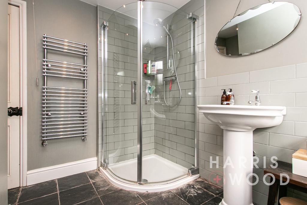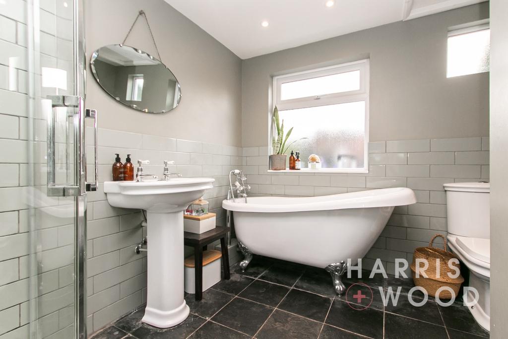 Two double glazed windows, low level WC, wash hand basin, bath with shower over