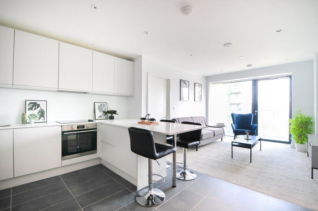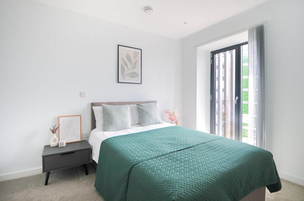 Inside, the property is thoughtfully designed, with two almost equally sized double bedrooms. One benefits from a private en-suite bathroom, while the other has direct access to a stylish Jack and Jill bathroom, creating a flexible arrangement that is ideal for couples, sharers, or visiting guests. Floor-to-ceiling windows flood the open-plan living area with natural light, creating a bright and inviting atmosphere throughout. The sleek, modern kitchen comes complete with integrated appliances, ensuring the apartment is ready to enjoy from the day you move in.