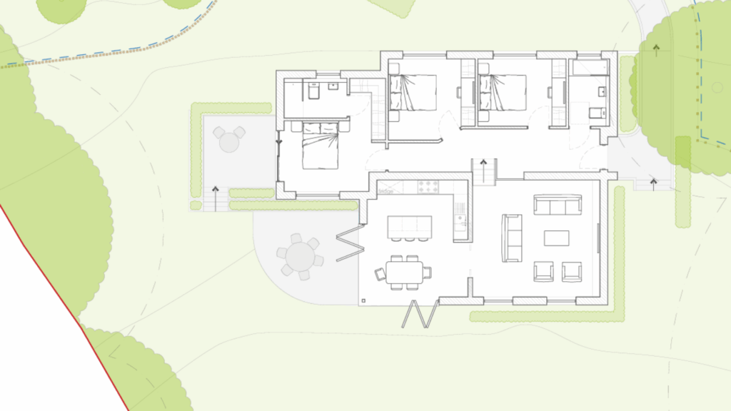Have you considered building your own home? This plot is available with planning permission for a 3-bedroom split-level bungalow.