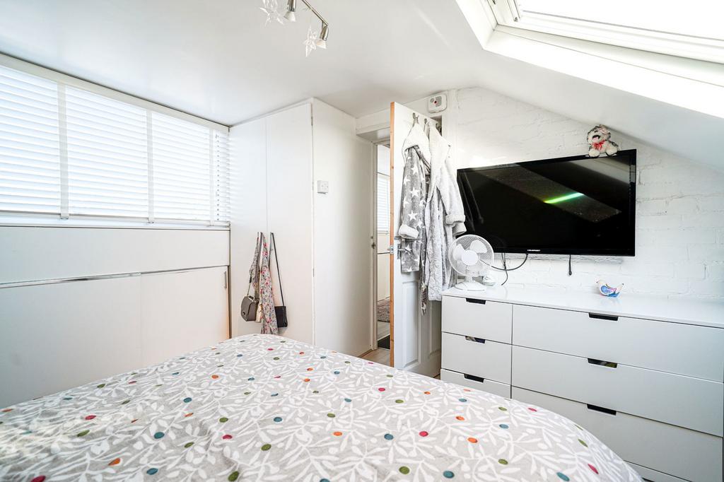With Velux window to the front elevation and dormer window to the rear elevation, bespoke storage to eaves, central heating radiator and stripped timber effect flooring
