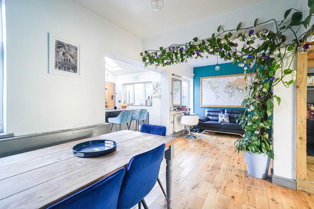 Having two staircases leading off to the first floor, double glazed door leading out to the rear garden, central heating radiator, engineered oak flooring, bespoke fitted breakfast area with seating, opening to breakfast kitchen and opening through to
