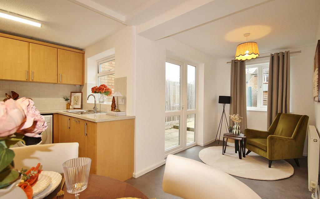 An extremely well presented and extended house, quietly situated in this small close on Thorney Leys. The property includes an attractive layout with a living room to the front, and a large kitchen/dining room to the rear, opening into a useful sitting area or office space, and then to the rear garden. There are 3 good size and well proportioned bedrooms, and a bathroom with a shower over the bath, in addition to double glazed windows and gas central heating (boiler approx. 18 months old). There is a private enclosed rear garden, with the benefit of rear access and a garden shed, and the front offers convenient side by side parking for 2 vehicles. Council Band C. EPC Rating: 77/C..