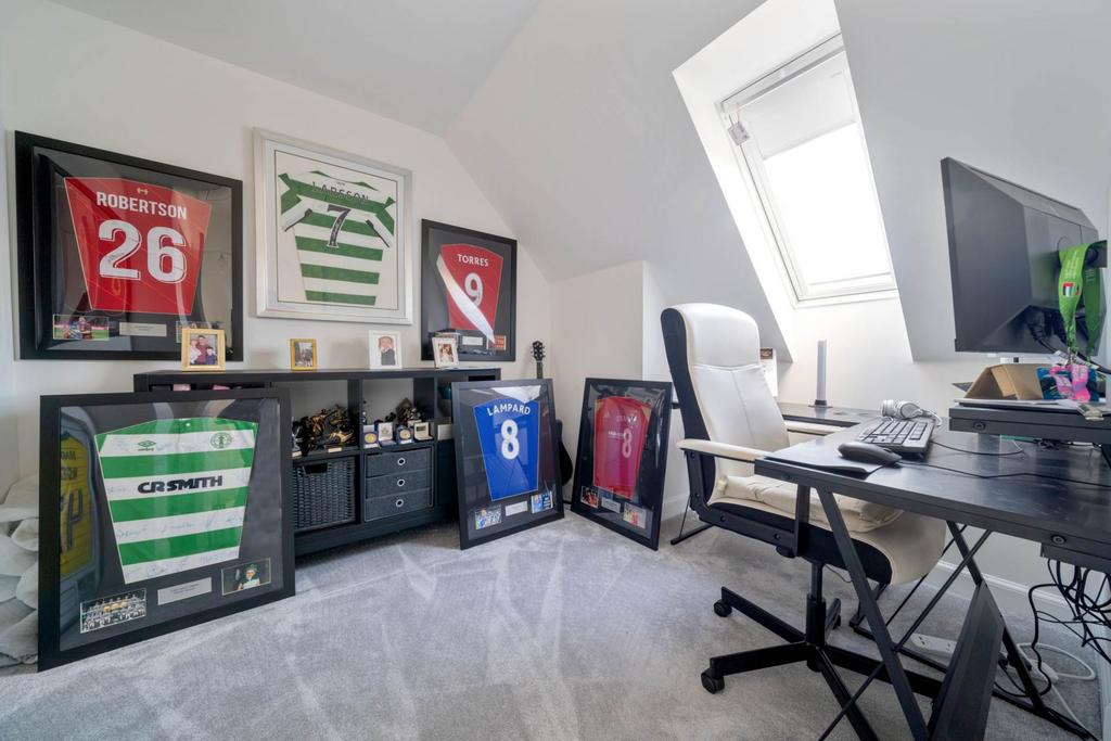 Occupying the upper floor is the impressive main bedroom suite, which boasts a large walk-in wardrobe and a private en-suite. An additional sixth room provides flexibility and would be ideal as a dressing room, nursery, or home office.