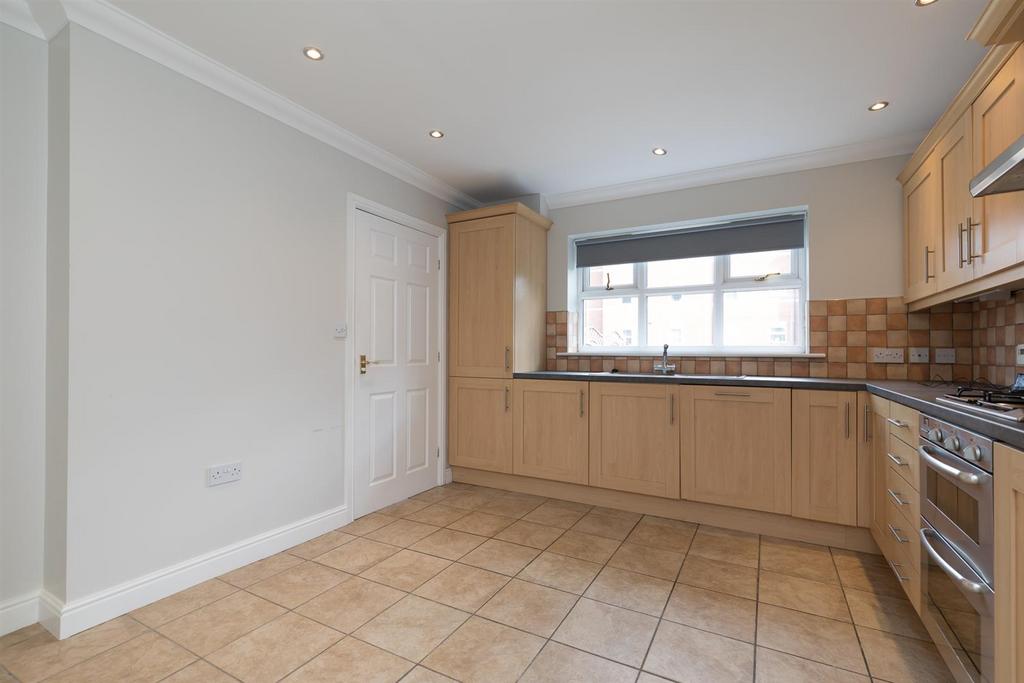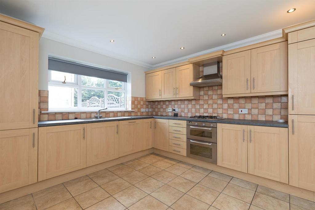 Window to the rear, radiator, tiled floor, fitted with a range of wall, base and drawer storage units, integrated gas hob with electric oven with extractor hood.