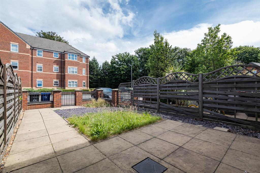 To the rear of the property is an enclosed garden with a pathway and gravel area.