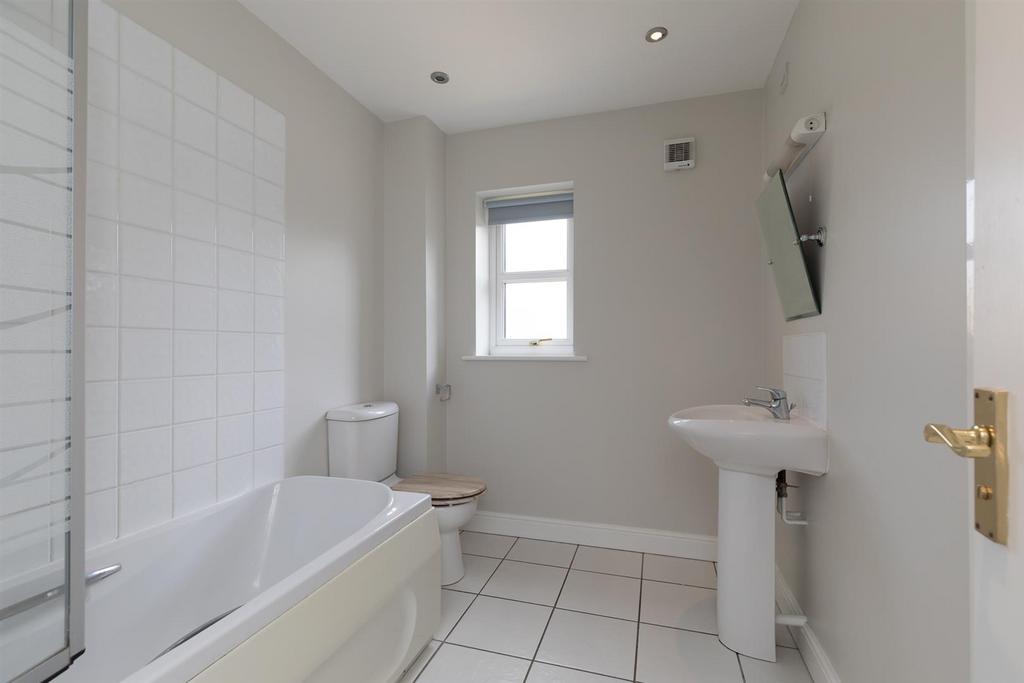 Window to the rear, tiled floor, radiator, fitted with a white suite comprising of panelled bath with shower from the mixer taps, w.c and wash hand basin.