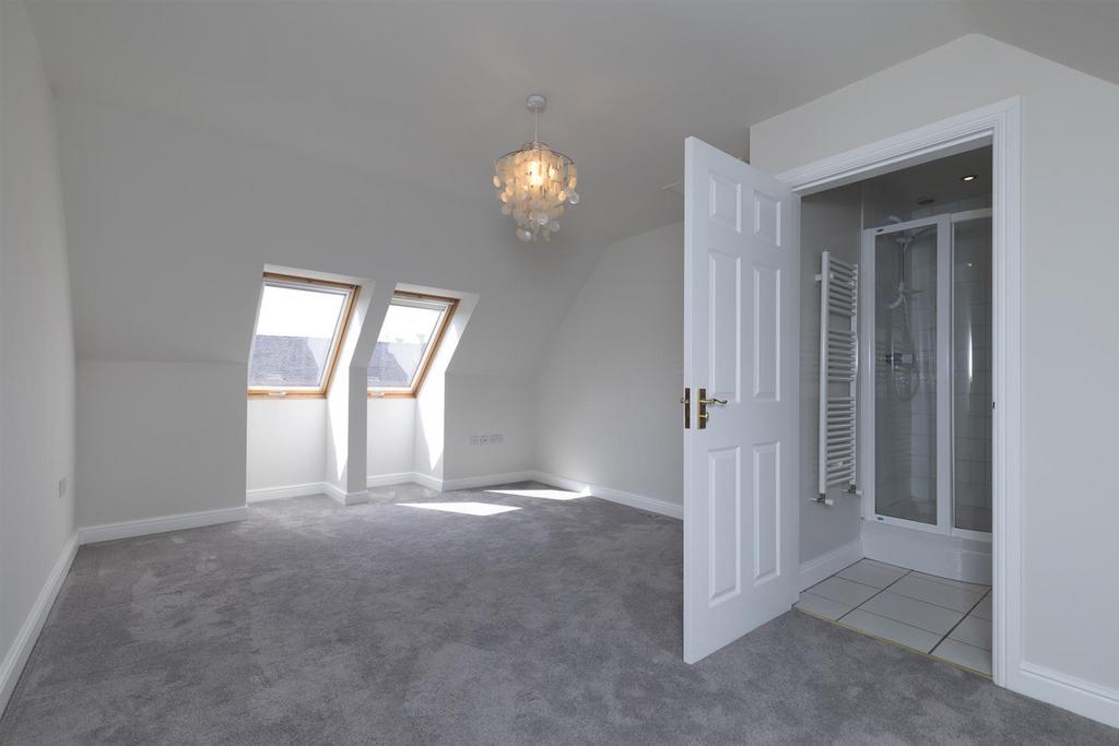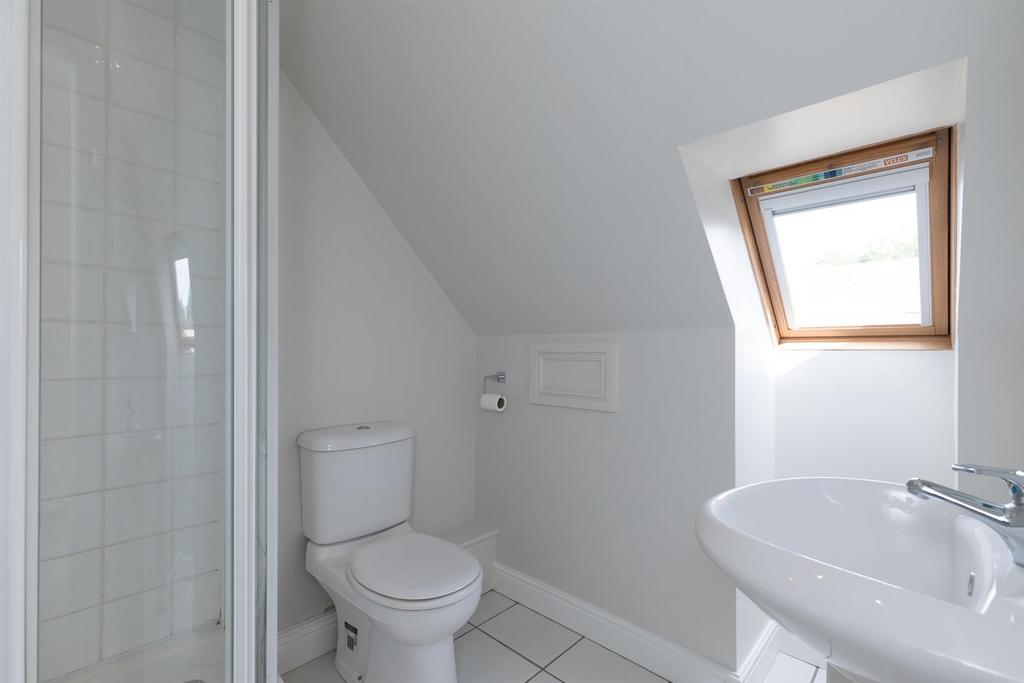 Velux window to the rear, tiled floor, ladder style towel radiator. Shower cubicle, w.c, wash hand basin.