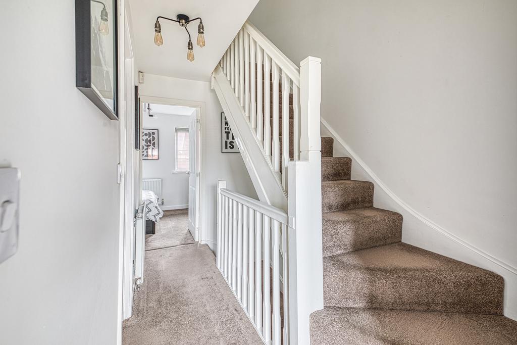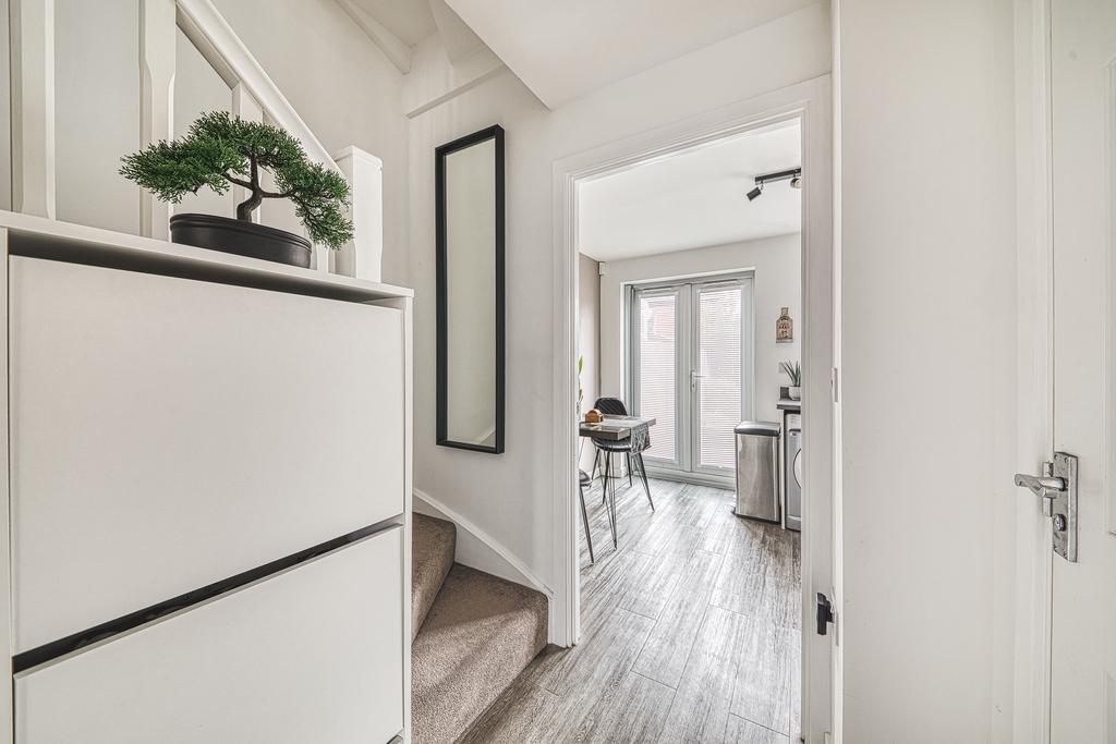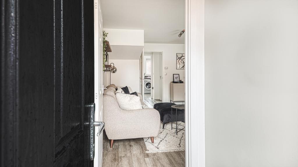Welcoming entrance hall providing access to the ground-floor accommodation, featuring the alarm control panel and a fitted coat hook, and finished in a neutral, contemporary style.