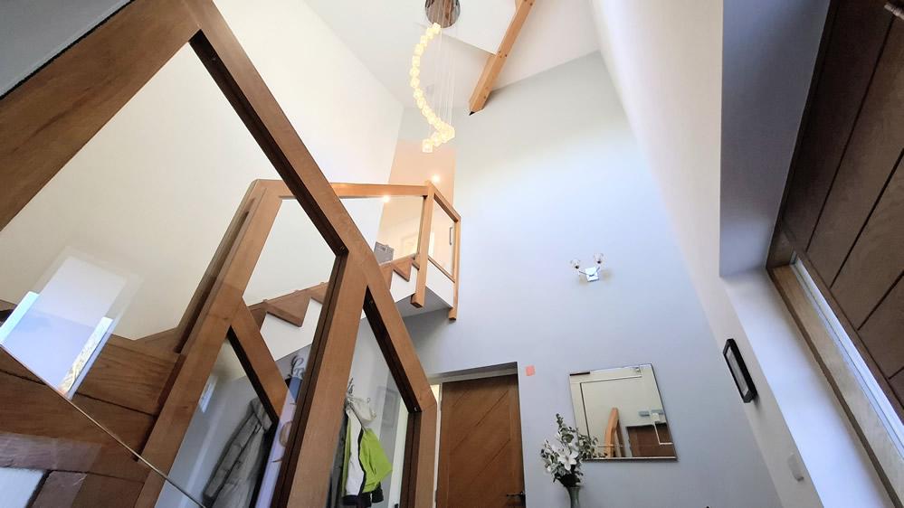 The front door opens into this spacious entrance hall with high ceilings giving a somewhat grand feel. There is space to accommodate occasional furniture and outerwear. Doors lead to the reception room and through to the garage, and stairs rise to the 1st floor landing