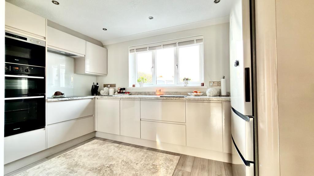 Step inside to discover an immaculately presented interior, where attention to detail is evident throughout. The ground floor is thoughtfully laid out, offering three generous reception rooms that provide versatile spaces for family living, formal dining, or a dedicated home office. These rooms are bathed in natural light, creating a warm and inviting atmosphere perfect for both everyday life and entertaining guests. The heart of this home is undoubtedly the refitted kitchen, a contemporary space designed for both functionality and style. Featuring high-quality fixtures, ample storage, and integrated appliances, it is a culinary haven where preparing meals becomes a joy. The seamless flow from the kitchen to the dining and living areas enhances the sense of open-plan living while retaining distinct zones.