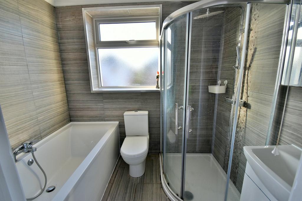 • Family bathroom/shower room incorporating an oversized panel bath with taps and shower attachment, good sized corner shower cubicle with chrome raindrop shower head and separate shower attachment, wash hand basin with vanity storage beneath, WC, fully tiled walls and flooring