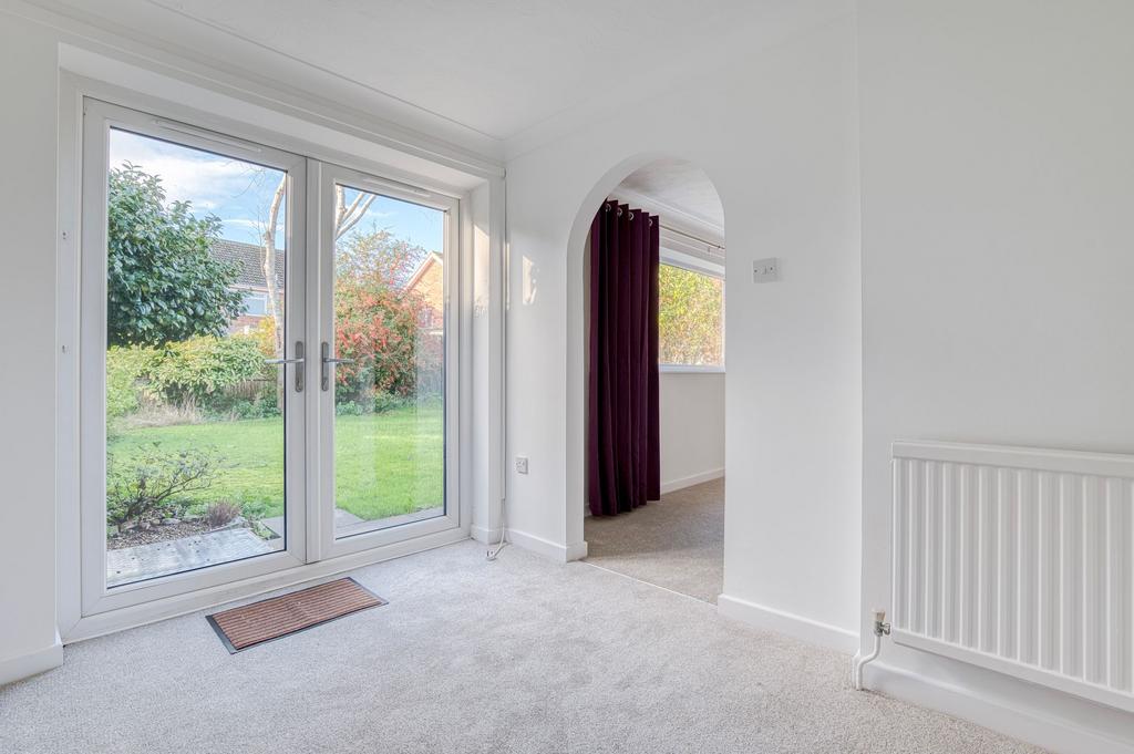 Set within a quiet cul-de-sac, this well-presented link detached bungalow offers generous single-level living following a historic extension and is ready to move straight into with no onward chain. Fresh redecoration and newly laid carpets create a bright and welcoming feel throughout, complemented by a modern fitted kitchen with integrated oven, hob, extractor and dishwasher. The spacious sitting room enjoys garden views and a central fireplace that could be opened for a wood burner or open fire if desired, while the additional family room provides valuable versatility with French doors to the garden. Two comfortable double bedrooms and a third flexible room sit alongside a contemporary family bathroom. Outside, the property enjoys a fully enclosed rear garden, a large lawned frontage with scope for further parking, a tarmac tandem driveway and an attached garage with potential for further parking subject to planning. The home also benefits from a new gas boiler installed in 2023, and sits within easy reach of the high street, shops, cafes, schools, green spaces, the town and the doctor’s surgery.