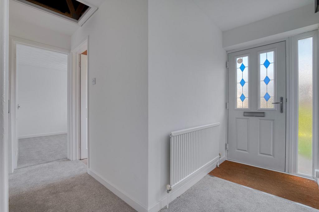 Step inside where the entrance hallway welcomes you with fresh décor and soft carpet underfoot, creating a warm first impression. A built-in storage cupboard sits off to one side, offering a practical space to keep coats and household items neatly stored. The hallway links easily to each part of the home and sets a calm tone as you move through this well-presented, detached bungalow, which has been historically extended to create generous single-level living. A bright and neutral décor is the first thing to greet you, courtesy of a fresh redecoration by the current owners, including paint and newly laid carpets throughout the home.