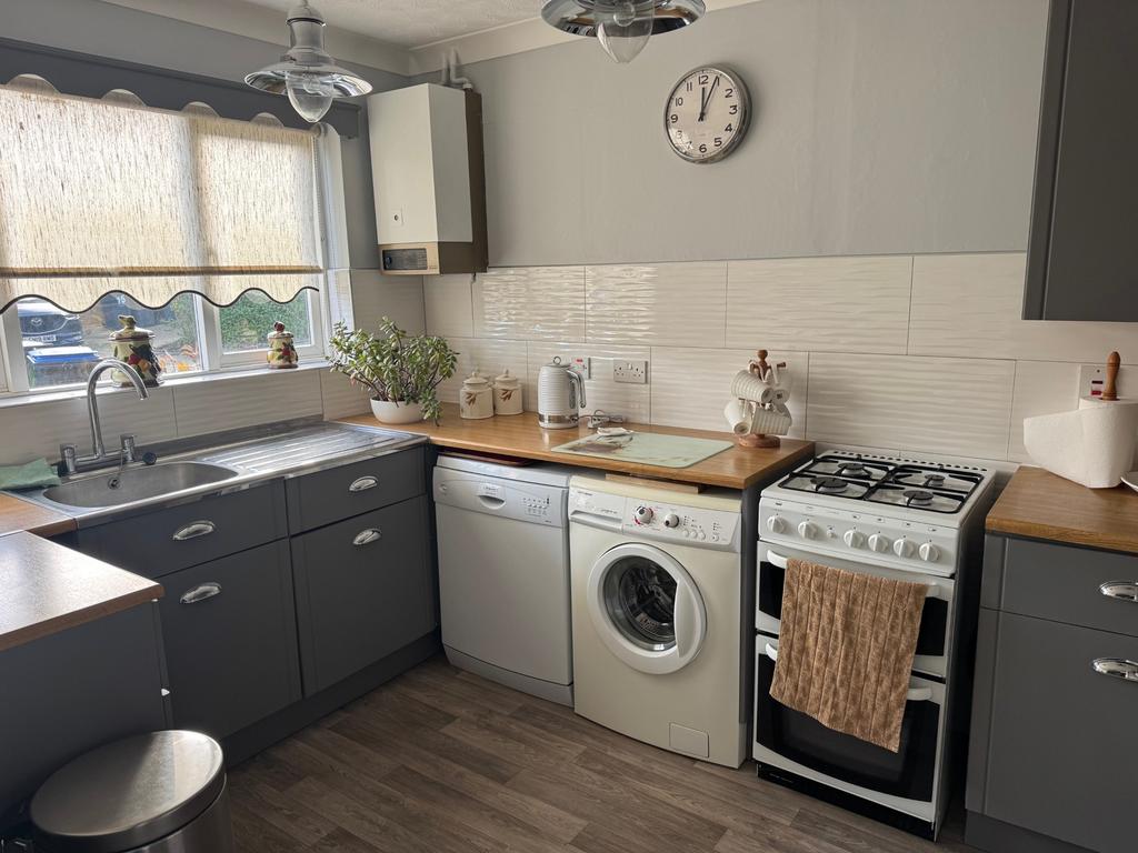 Inside, the home is arranged over two generous floors. The ground floor features a bright and spacious lounge, a contemporary shower room for guests or busy mornings, and a modern kitchen overlooking the south-facing back garden – ideal for summer gatherings or tranquil evenings outdoors. Upstairs, three well-proportioned bedrooms provide ample space for family or visiting guests, complemented by a sleek family bathroom. With central heating throughout, comfort is guaranteed in every season.