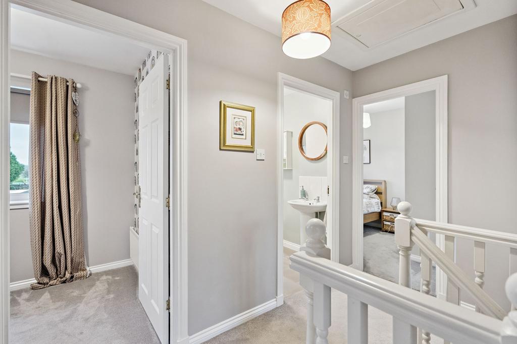 On the first floor, an internal hallway leads to the principal bedroom, which benefits from an en-suite shower room. There are three further well-proportioned bedrooms, each enjoying ample natural light. A family bathroom with WC completes the upper accommodation.