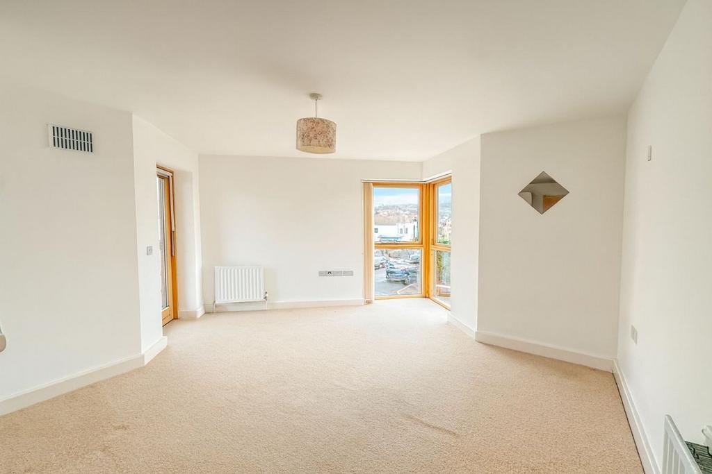 Bright open-plan lounge/kitchen with Juliet doors leading to balcony
