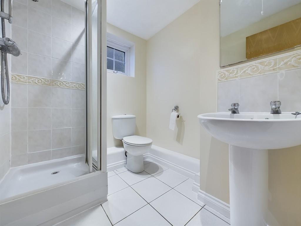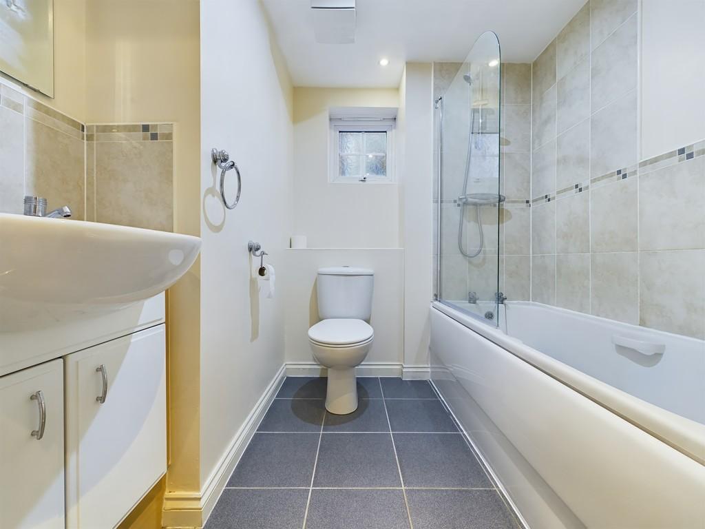 The main bathroom is equally impressive, featuring partial tiling around the bathtub. This space includes a shower over the bath, a basin, and a W/C.