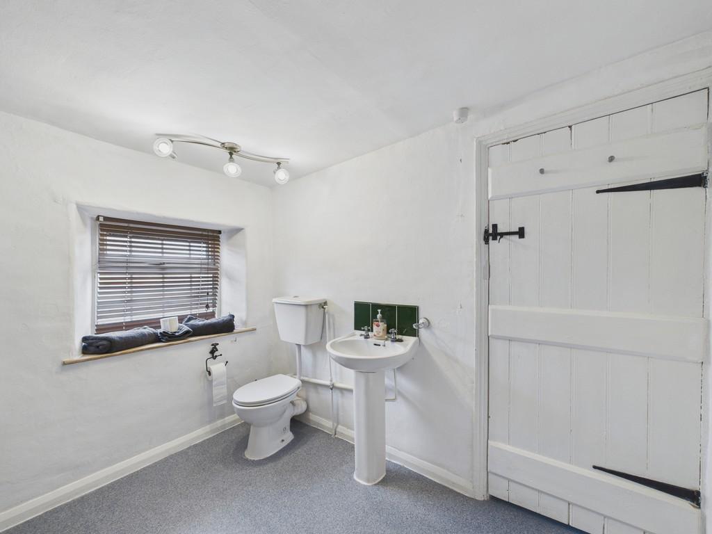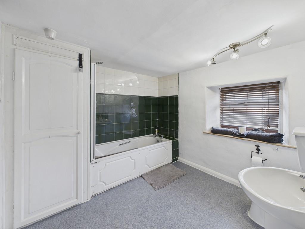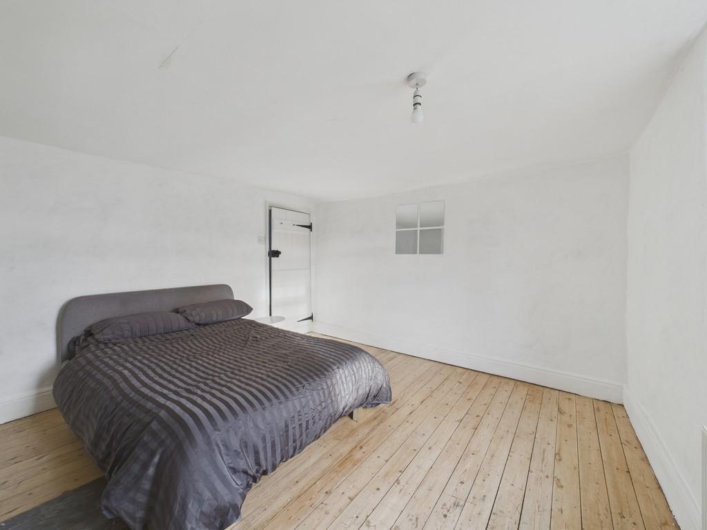 Upstairs, the bedroom is larger than expected. Wooden flooring and a second feature fireplace give it a warm, traditional feel, and there's still space here for wardrobes or drawers. The bathroom sits off the landing and includes a three-piece suite, keeping everything practical and simple.