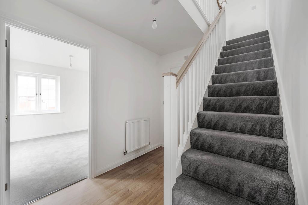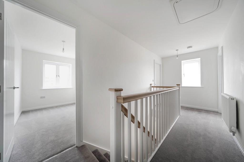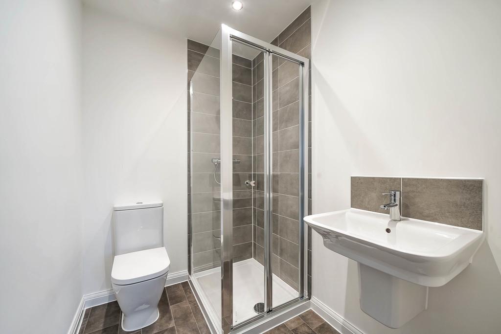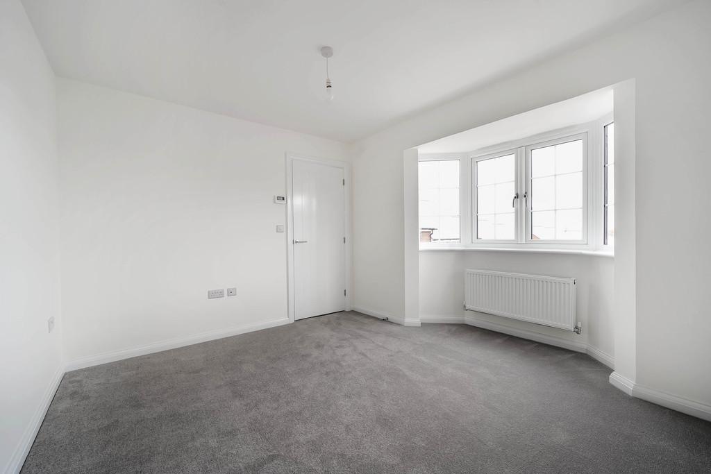 The first floor comprises three bedrooms, including a generous principal bedroom with bay window and access to the family bathroom. The remaining bedrooms are well sized and suitable for children, guests, or use as a home office. The contemporary family bathroom is finished with neutral tiling and modern fixtures, while an additional shower room enhances convenience for busy households.