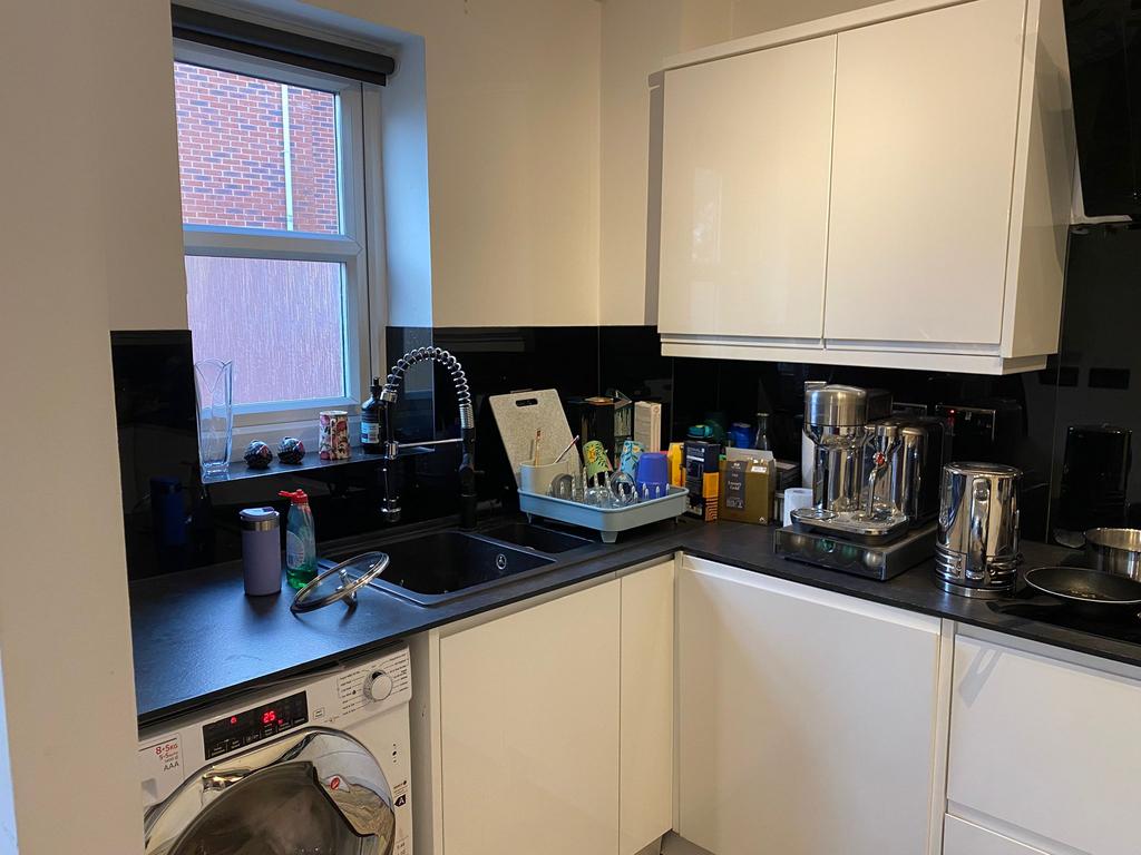 Step inside to discover a spacious, contemporary interior, featuring a generous master bedroom complete with a sleek en-suite bathroom. A second double bedroom and a well-appointed main bathroom make the layout ideal for sharers or those who value extra space for guests or a home office. The welcoming living area is bathed in natural light and flows seamlessly into a dining space, perfect for entertaining or relaxing after a long day. A modern kitchen comes fully equipped, complementing the overall refined finish throughout the apartment.