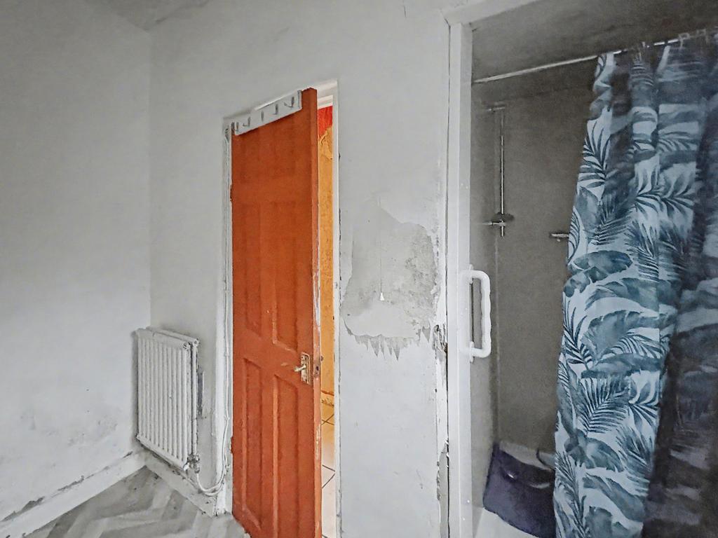 Frosted Upvc double glazed window to rear, plastered walls, plastered ceiling, vinyl flooring, pedestal sink, shower unit and radiator.