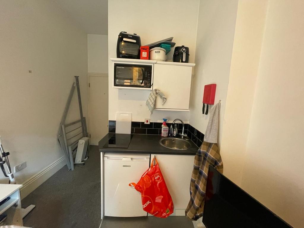 Suitable for an individual or couple. The studio itself is generously proportioned, with contemporary furnishings including a large bed, table and chair/study desk. There is a modern kitchen featuring a oven and small hob & fridge/freezer. There is also an en-suite shower room. The entrance to the building is via a secure entry fob system and there is a shared laundry room within the development with washing machines & dryers.