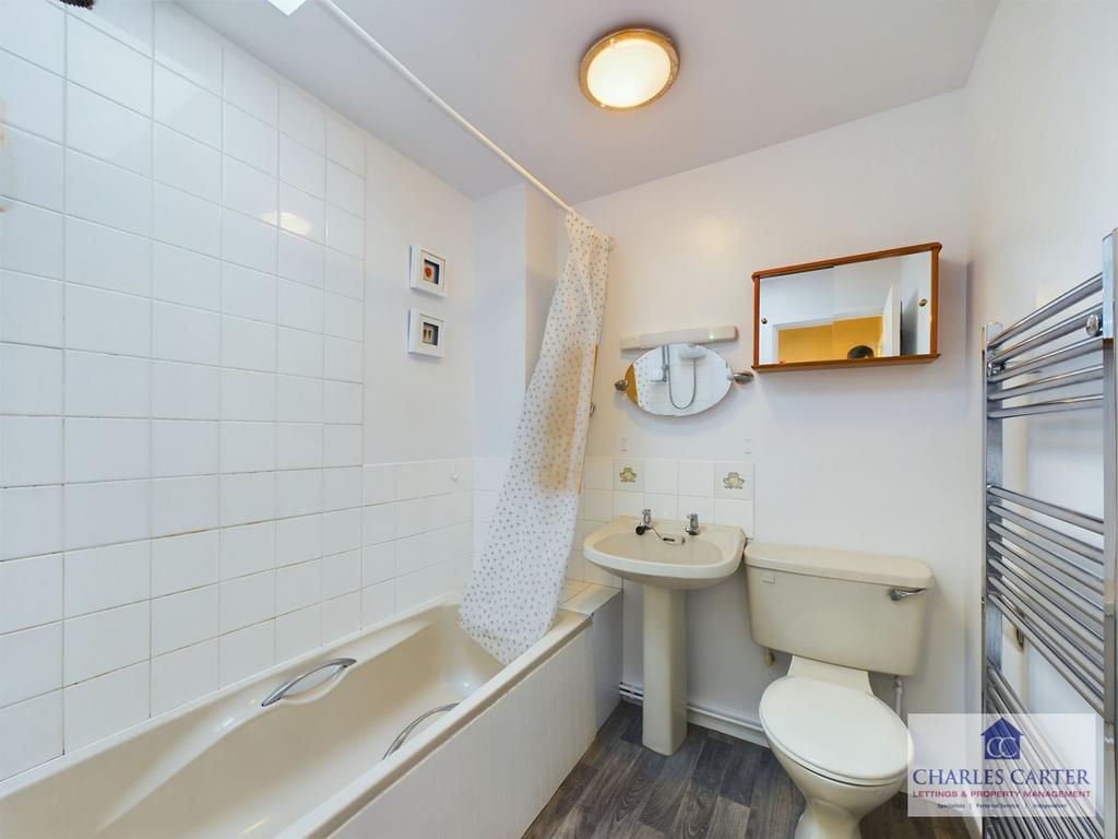 Fitted with a range of wall and base units with working surfaces over a tiled splashbacks. 1 and a half bowl sink and drainer with mixer tap over, space for cooker with extractor over, space for washing machine and further undercounter appliance. Wall mounted Worcester combination boiler, double glazed window to front aspect, radiator.