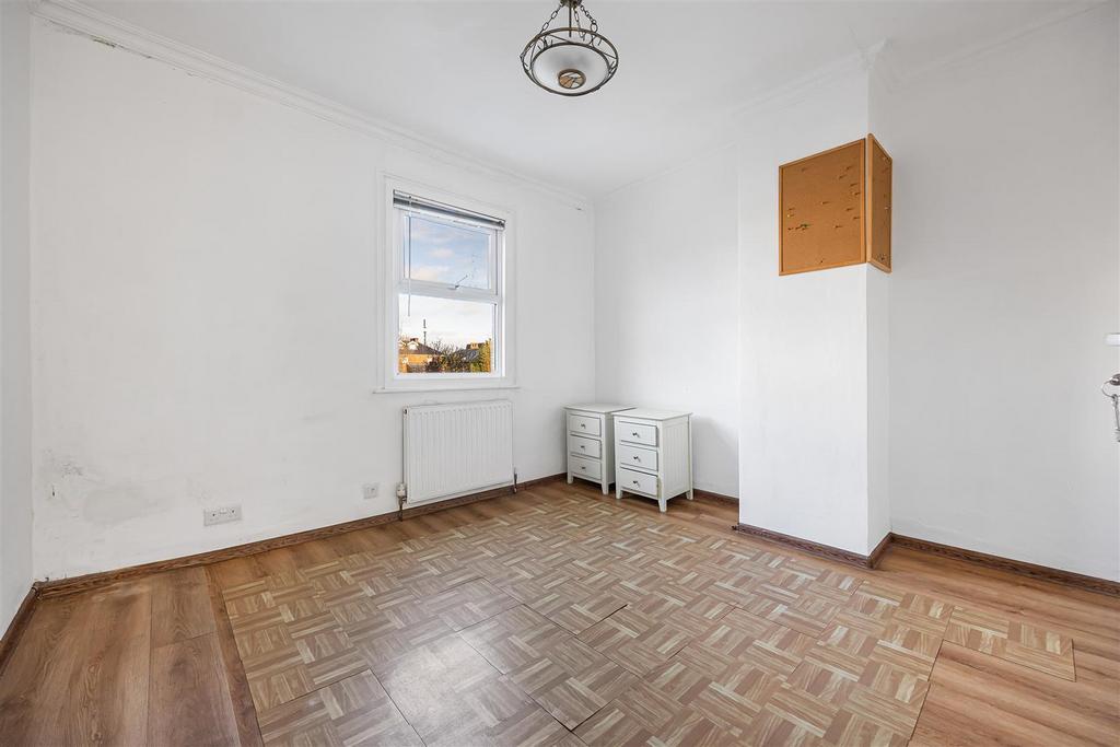 The property is well proportioned throughout and features two reception rooms, which flow seamlessly into a full-width kitchen benefitting from a skylight that enhances natural light. A refitted family bathroom completes the ground floor accommodation. On the first floor, the property offers two generously sized double bedrooms.