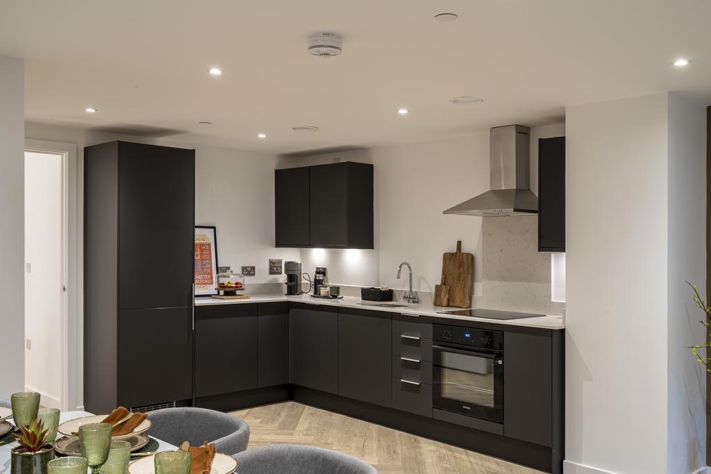 * A spacious open-plan kitchen/living area with modern kitchen appliances including; a ceramic induction hob, extractor, oven, fridge freezer and dishwasher