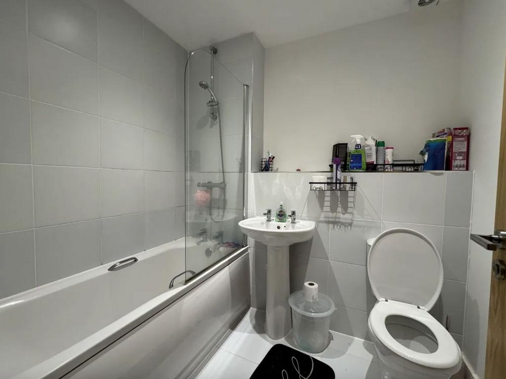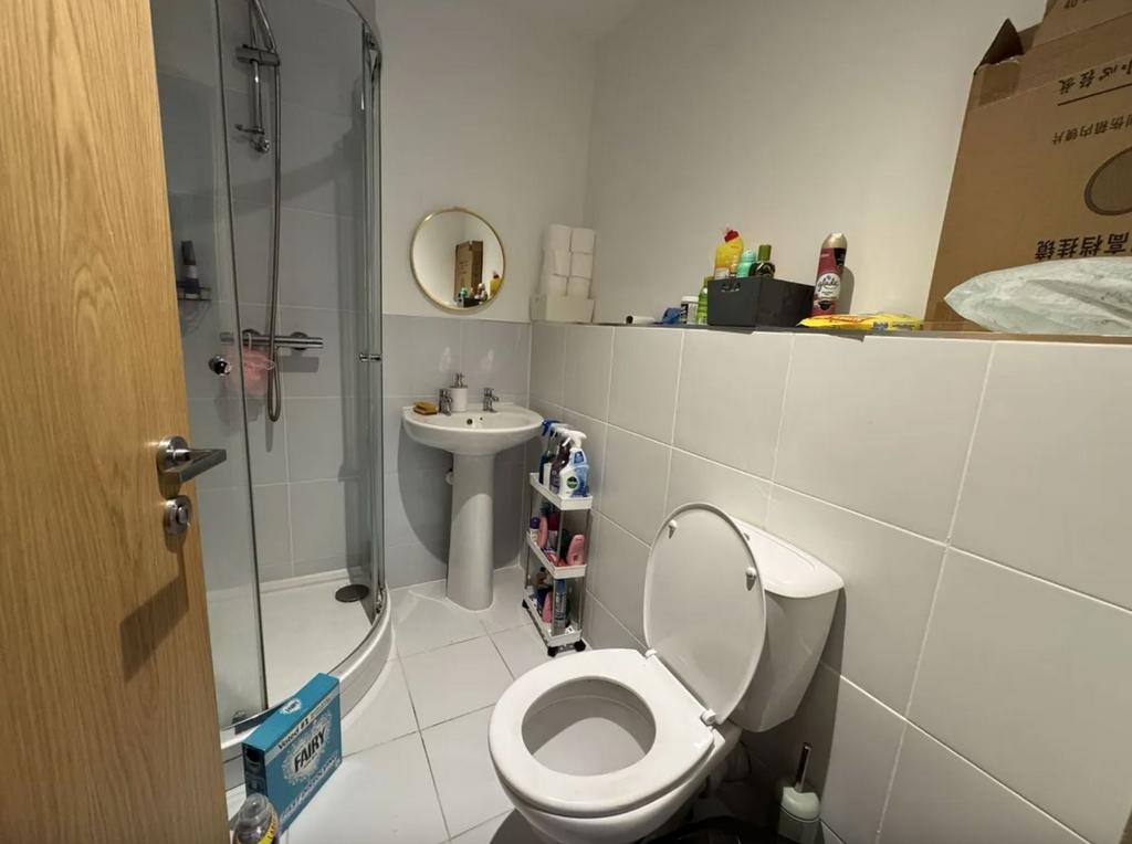 As you enter the apartment, you are greeted by a welcoming entrance hall which houses a utility cupboard and provides access to all other rooms. To the right of the hallway, you will find the spacious open plan kitchen/living room which has a built in fridge/freezer and oven with hobs and overhead extractor fan, a washing machine, and plenty of cupboard and drawer space. The room is also big enough to accommodate a small dining table as well as the necessary living room furniture. Next to the living room there is the smaller of the two bedrooms, then the larger bedroom with the en suite shower room. Both bedrooms benefit from a good amount of natural light, and provide comfort for occupants. Finally there is the main bathroom which is to the left of the front door and briefly comprises of a bath with overhead shower, toilet and sink.
