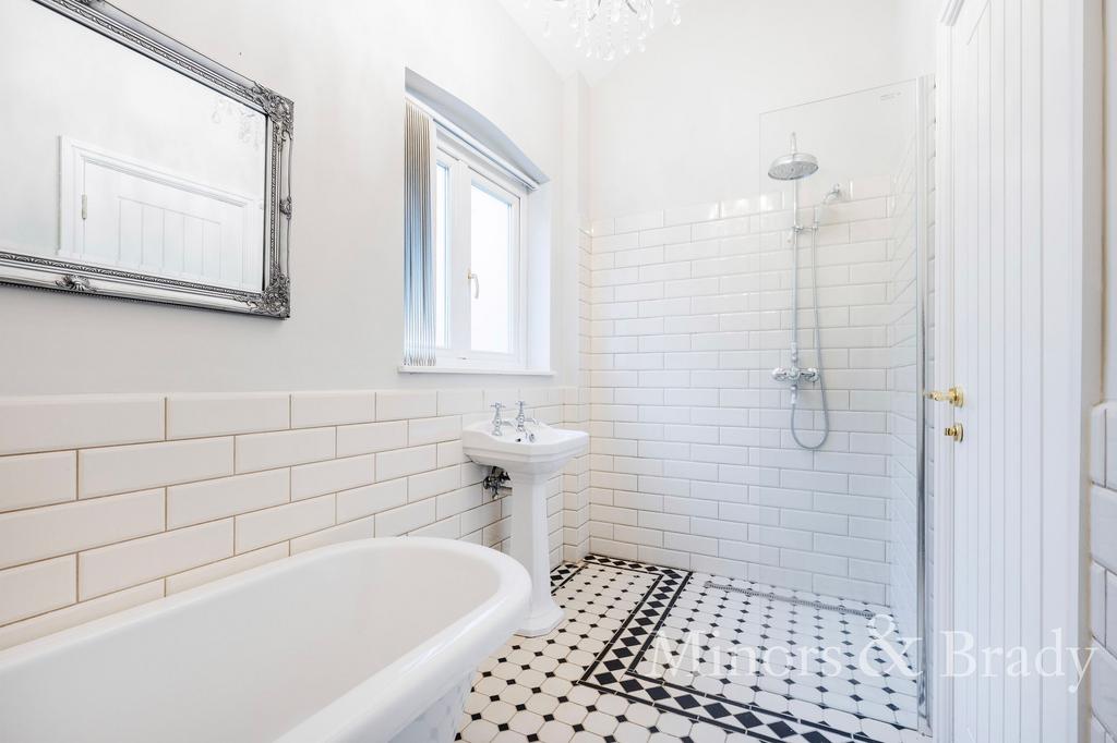 Along the hall are the two generous double bedrooms, both well proportioned and finished in a simple, neutral style that will work with a variety of furnishings. The bathroom is set close by and includes a bath as well as a separate walk in shower, giving you the benefit of both.