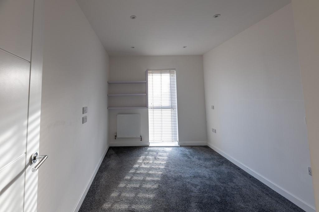 Two double glazed windows to the front, smooth ceiling with inset spotlights, radiator, contemporary fitted wardrobes and door to.
