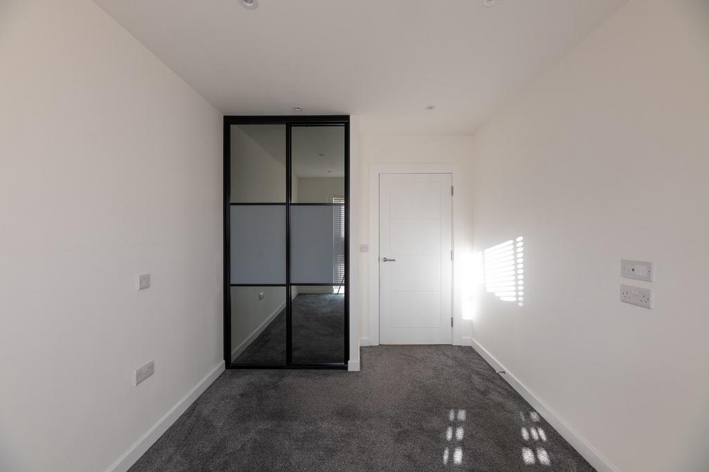 Double glazed window to the front, smooth ceiling with inset spotlights, radiator and contemporary fitted wardrobes.