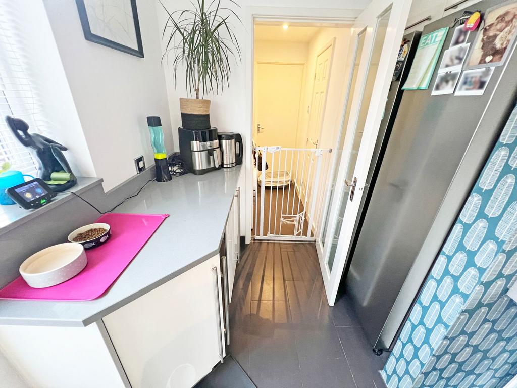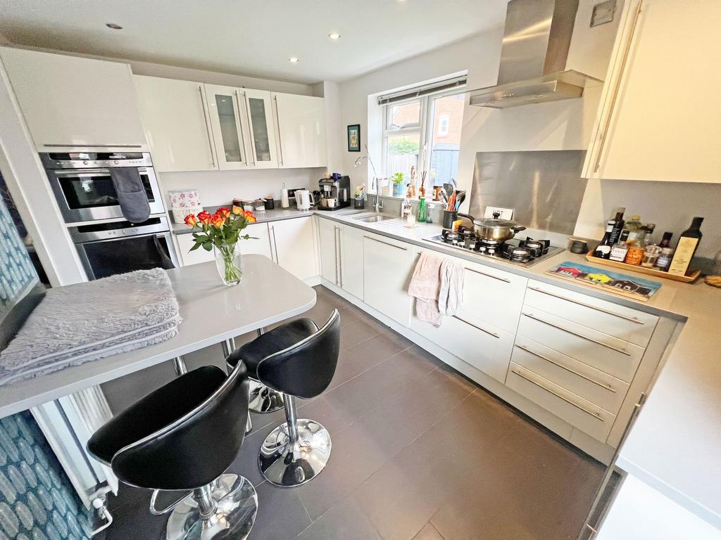 Upon entering the property, the hallway provides access to the stairs and the first-floor landing, as well as the living room to the immediate left. This room features a box bay window to the front aspect, as well as an opening leading straight into the dining area that has patio doors leading into the garden. To the rear is the kitchen which features a range of wall and base units, as well as several built-in appliances, including a double oven, a hob with an extractor over. There is additional space and plumbing for other appliances, and this extends into the utility room from where access is gained to a ground-floor cloakroom.