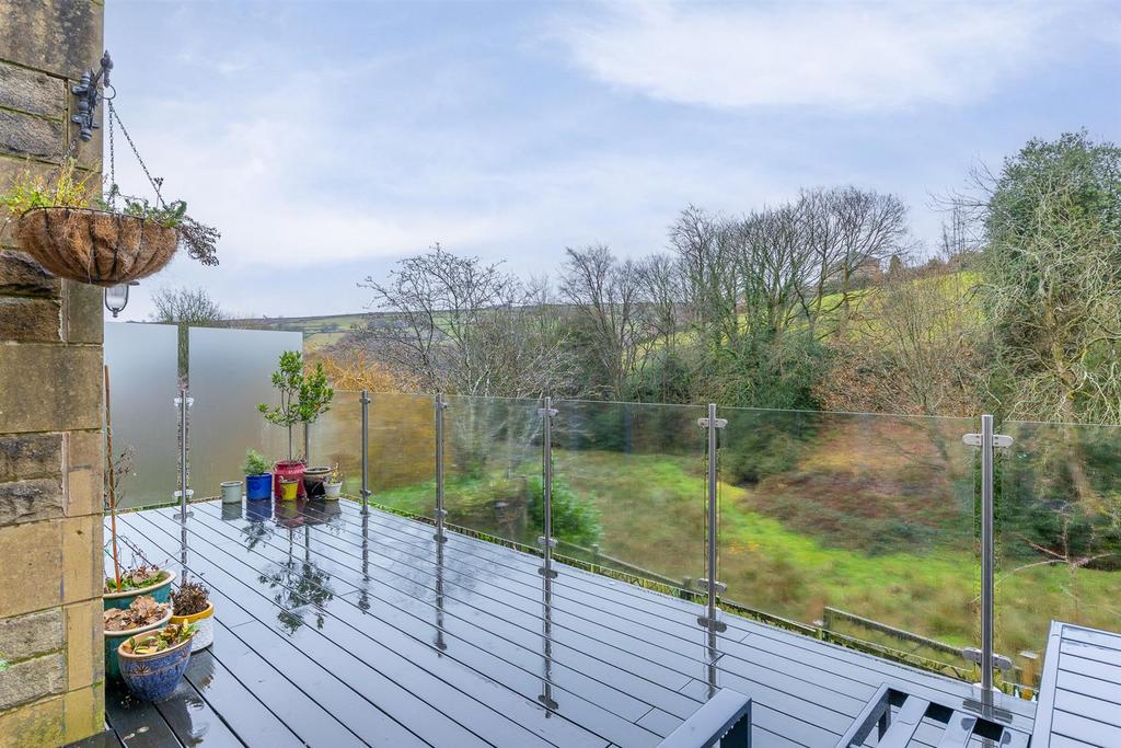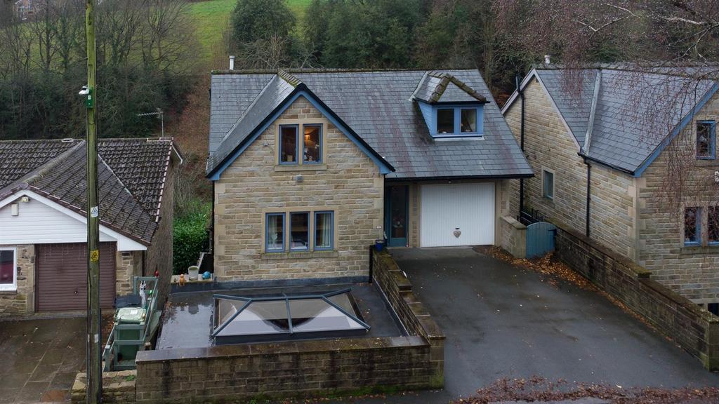 A very special four/five double bedroom detached family home just above Holmfirth with gorgeous rural views and stunning, contemporary and extended living accommodation to the ground floor. The property is immaculate with quality and modern fixtures and fittings throughout. Briefly comprises entrance hallway, integral garage, four double bedrooms, two with ensuites and family bathroom. Lower ground hallway, home office/fifth bedroom, lounge, dining kitchen, family room and utility/laundry room. Decked balcony, lawned and paved garden, off road parking and integral garage.