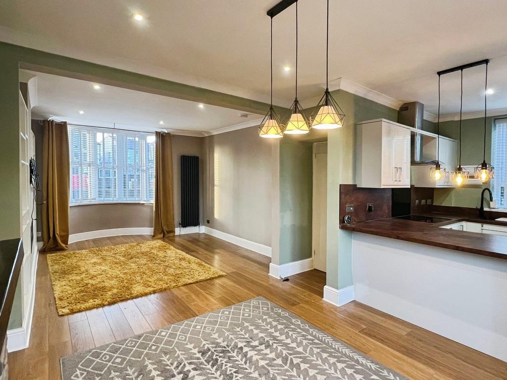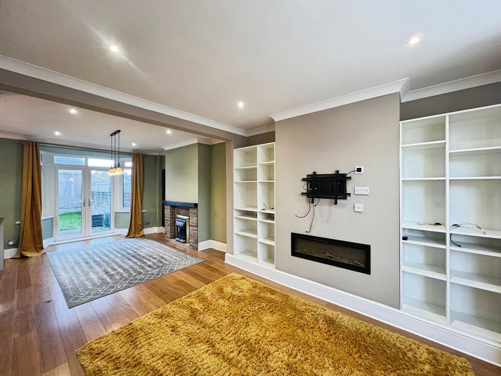 5.62m x 7.30m (18' 5" x 23' 11") Skimmed and coved ceiling, inset spot lights, PVCu double glazed bay window overlooking the front of the property, PVCu patio doors set within a bay leading to the rear of the property, three sets of vertical radiators and laminate flooring. Built in storage to the alcoves and electric inset fire.