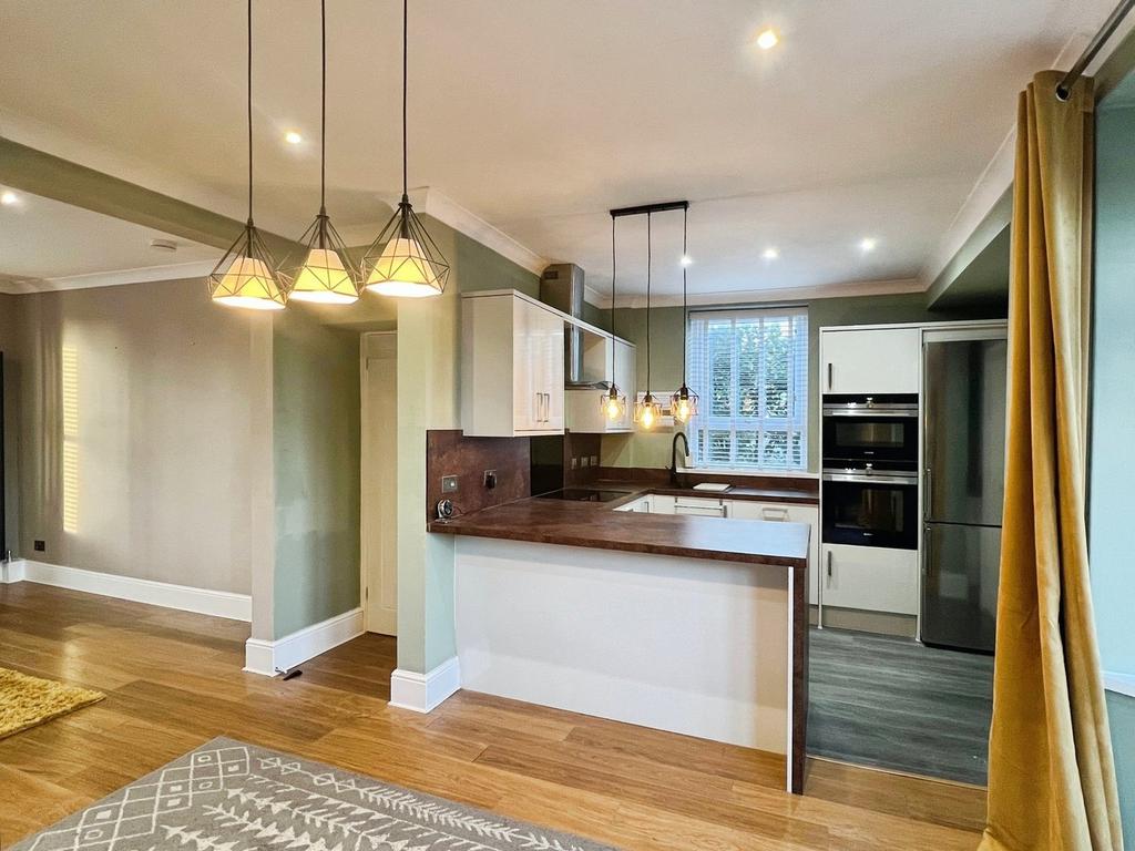 The kitchen is finished with skimmed and coved ceiling, inset spot lights, part emulsioned/part laminate splash back areas, PVCu double glazed window overlooking the side of the property and grey wood effect laminate flooring. The kitchen is fitted with a range of wall and base units with complementary work surfaces. Inset black sink and tap. Inset four ring induction hob with glass splash back and stainless steel extractor hood. Space for upright fridge/freezer. Integrated appliances to include dishwasher, wine cooler and high level combination micro...
