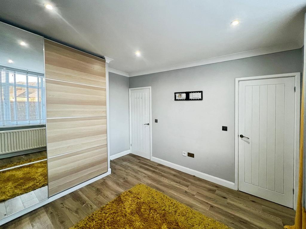 3.28m x 3.57m (10' 9" x 11' 9") Skimmed and coved ceiling, inset spot lights, PVCu double glazed bay window overlooking the front of the property, vertical radiator and fitted carpet. Two built in wardrobes.