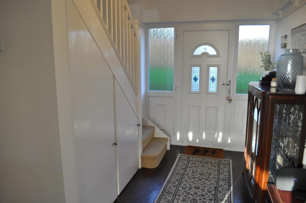 ENTRANCE - Georgian style uPVC front door with stained and leaded glass panel side windows with bamboo pattern glass.