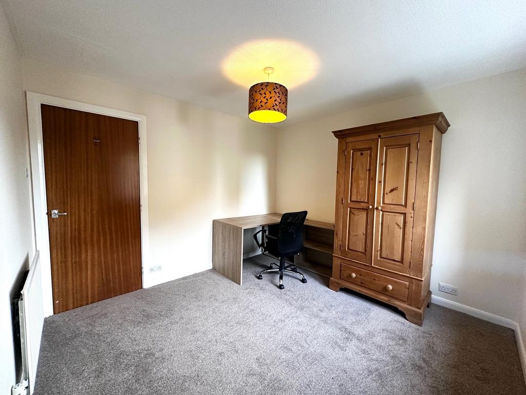 There are two double bedrooms: the primary featuring a large fitted wardrobe and matching chest of drawers, while the second offers a free-standing wardrobe and an L-shaped desk, ideal for home working. A modern bathroom and fresh redecoration throughout complete this attractive property.