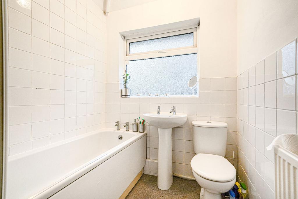 Being fitted with a three piece white suite comprising a panelled bath with electric shower over, pedestal wash hand basin and a low flush W.C. Tiling to water prone areas, obscure double glazed window to rear and radiator