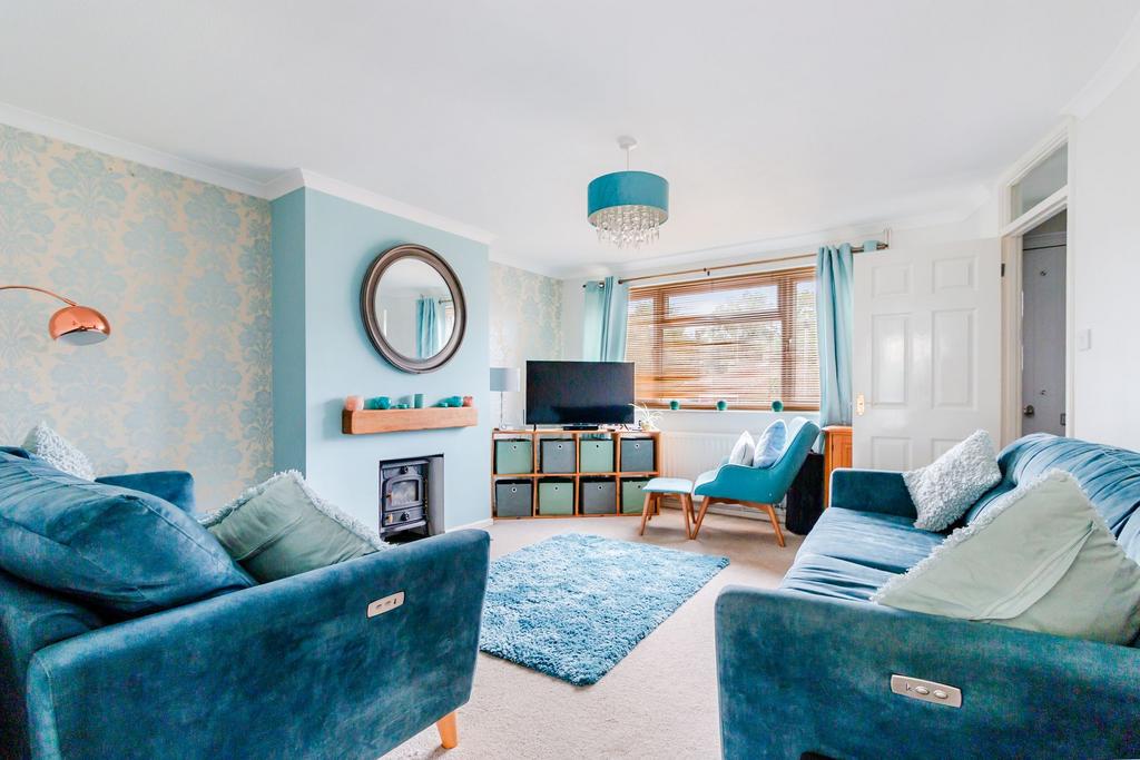 A beautifully presented, light and deceptively spacious three bedroom family home with a garage, log burner, separate dining area and landscaped gardens occupying a generous westerly plot at the end of a cul-de-sac on the outskirts of this sought after market town.